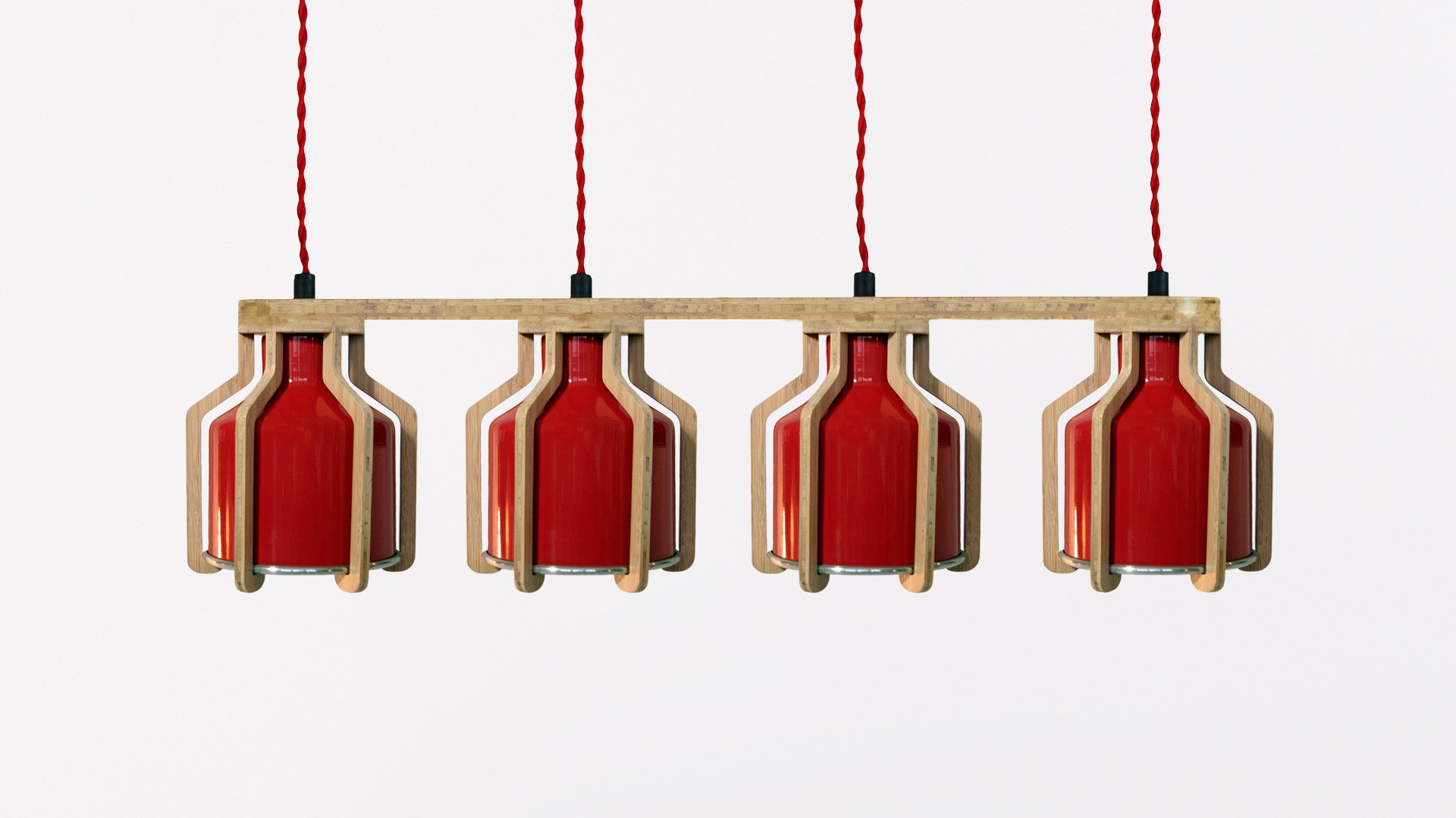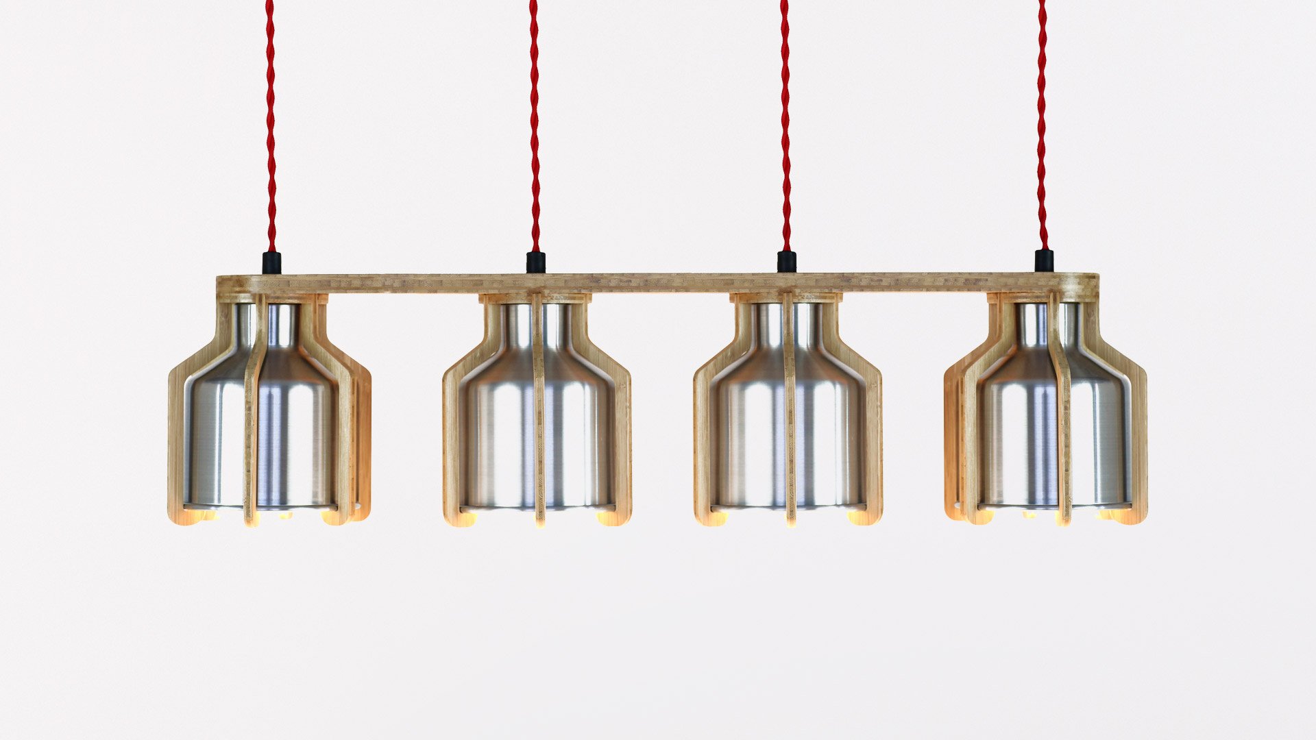 The Cell Quadruplet is a multi pendant light fitting which as part of the Cell range offering a modern suspended lighting solution for commercial interiors, including hospitality and workplace. The four spun metal pendant light shades can be made of either aluminium or copper which can be clear lacquered or finished in your choice of colour; while the bamboo ‘cages’ can either have a natural or dark finish. The choices we offer are possible because all of our lighting is handmade to order by our British craftsmen.