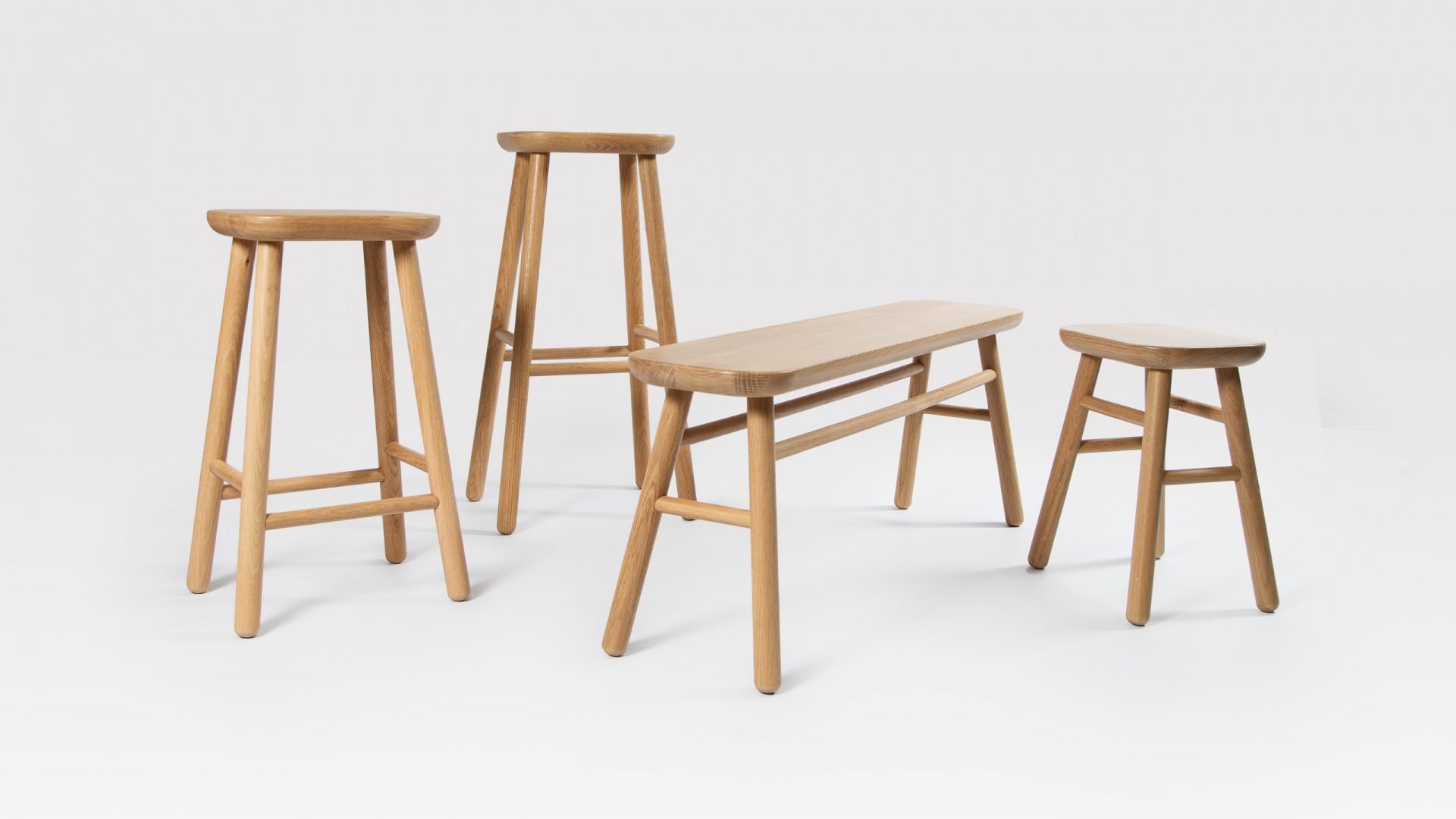Handmade by our craftsmen from sustainably sourced solid oak, the Jasper wooden counter stools have dowel legs and a tablet shaped seat that takes inspiration from smooth stones. Hence the oak counter stools name of Jasper, which is a mineral that’s often seen as pebble shaped gemstones. The beautiful hand finished surfaces and soft rounded shapes of these modern counter stools give them a wonderful tactile quality.
