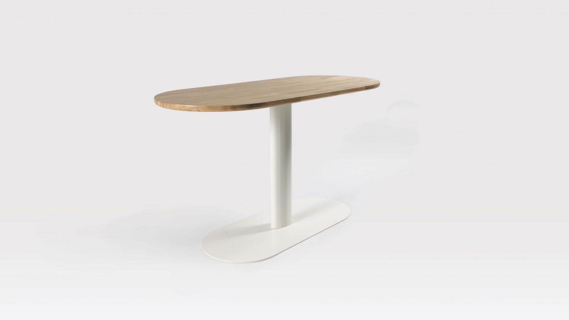 The Georgie pedestal dining table has a distinctive lozenge shaped top in solid oak. The same contour is followed through in the profile of the powder-coated steel base; making this 4 seater table a stylish, as well as durable option for a variety of hospitality settings. Especially as this contemporary dining table can also be used in conjunction with the other modern tables in our Georgie range which are similar in design and available in an assortment of sizes for different uses: Styles: Georgie Side Table / Georgie Cafe Table / Georgie Coffee Table / Georgie Poseur Table.