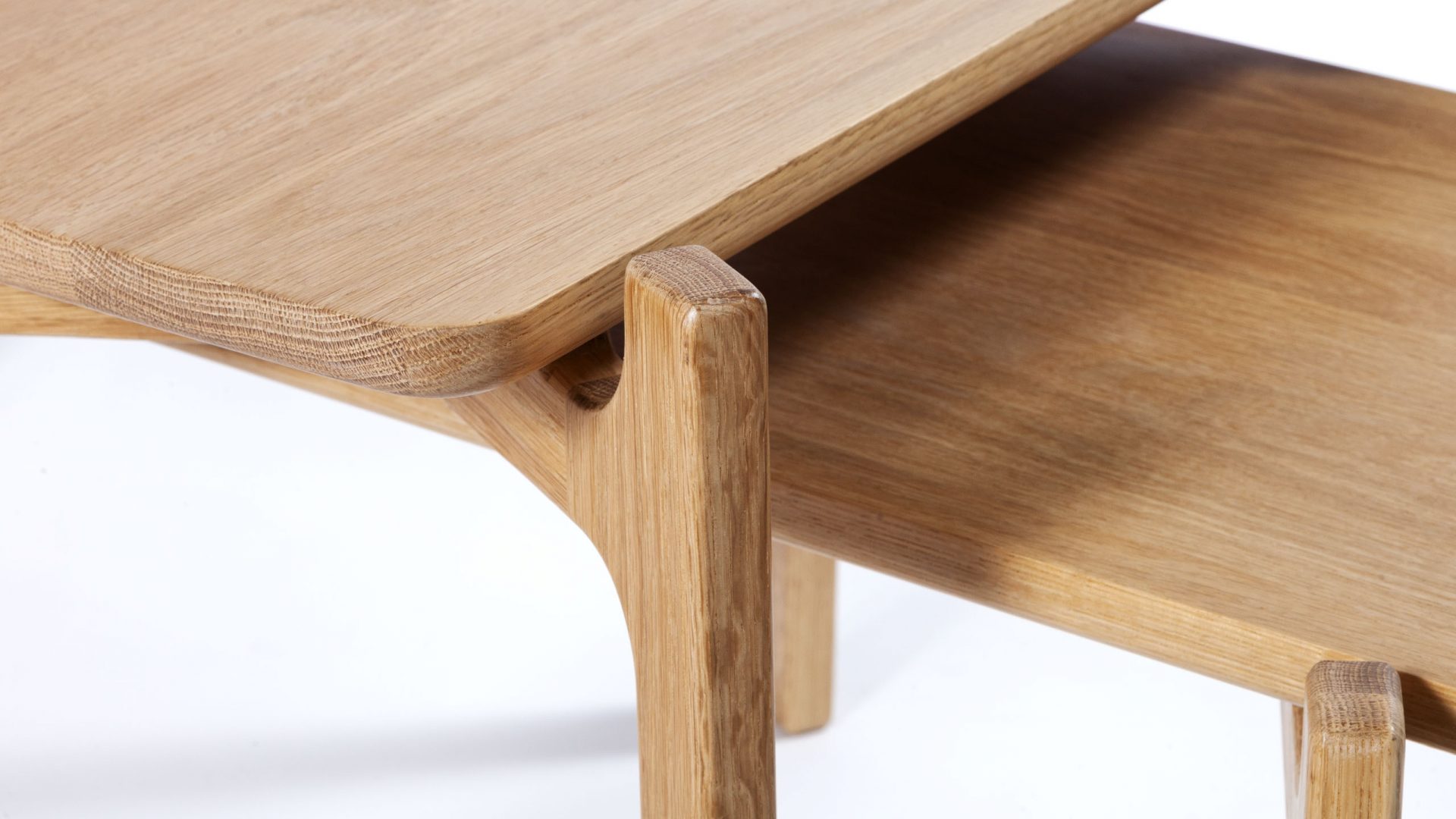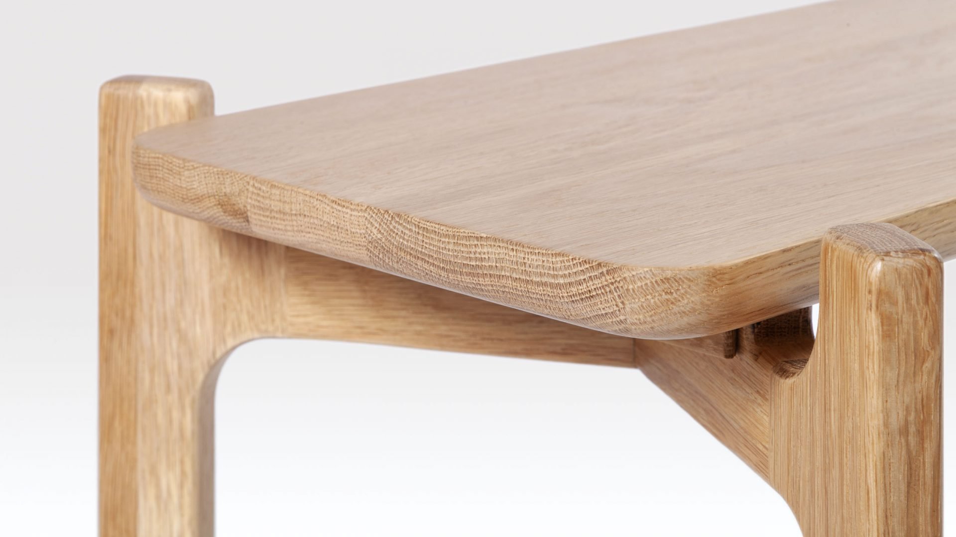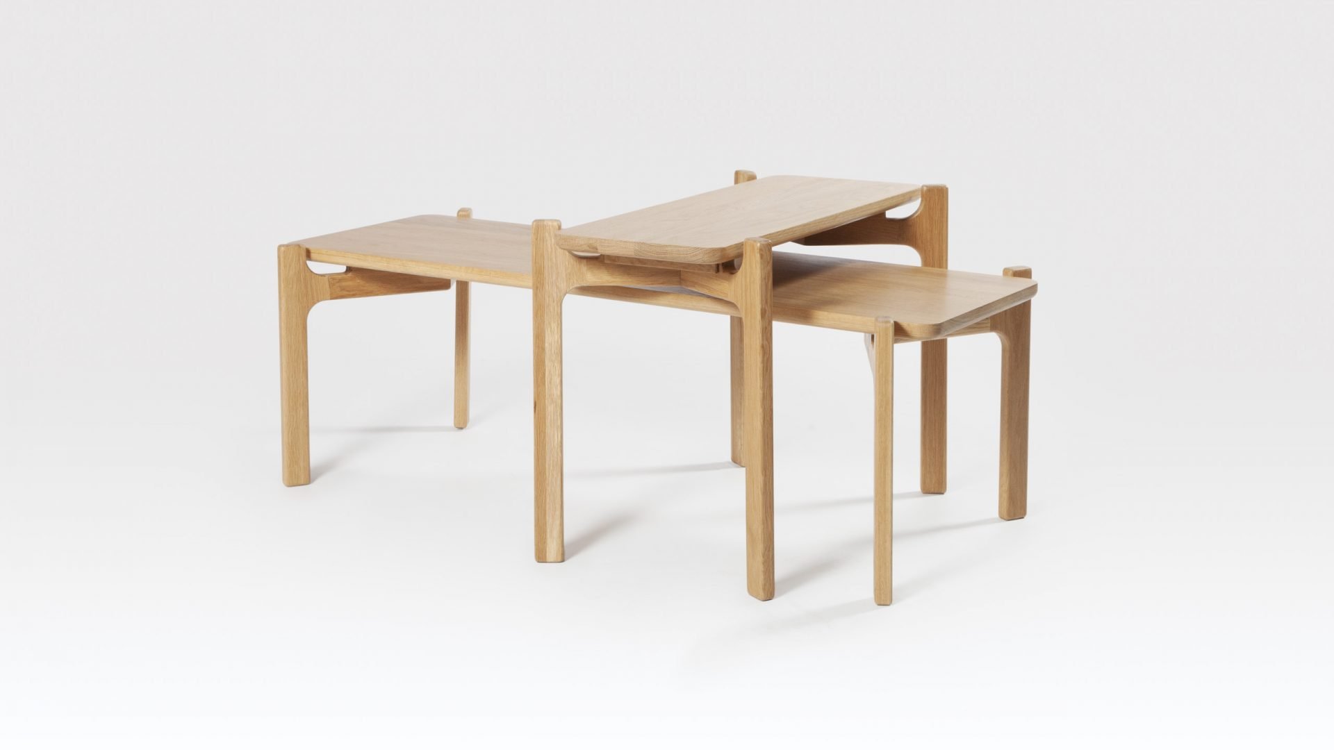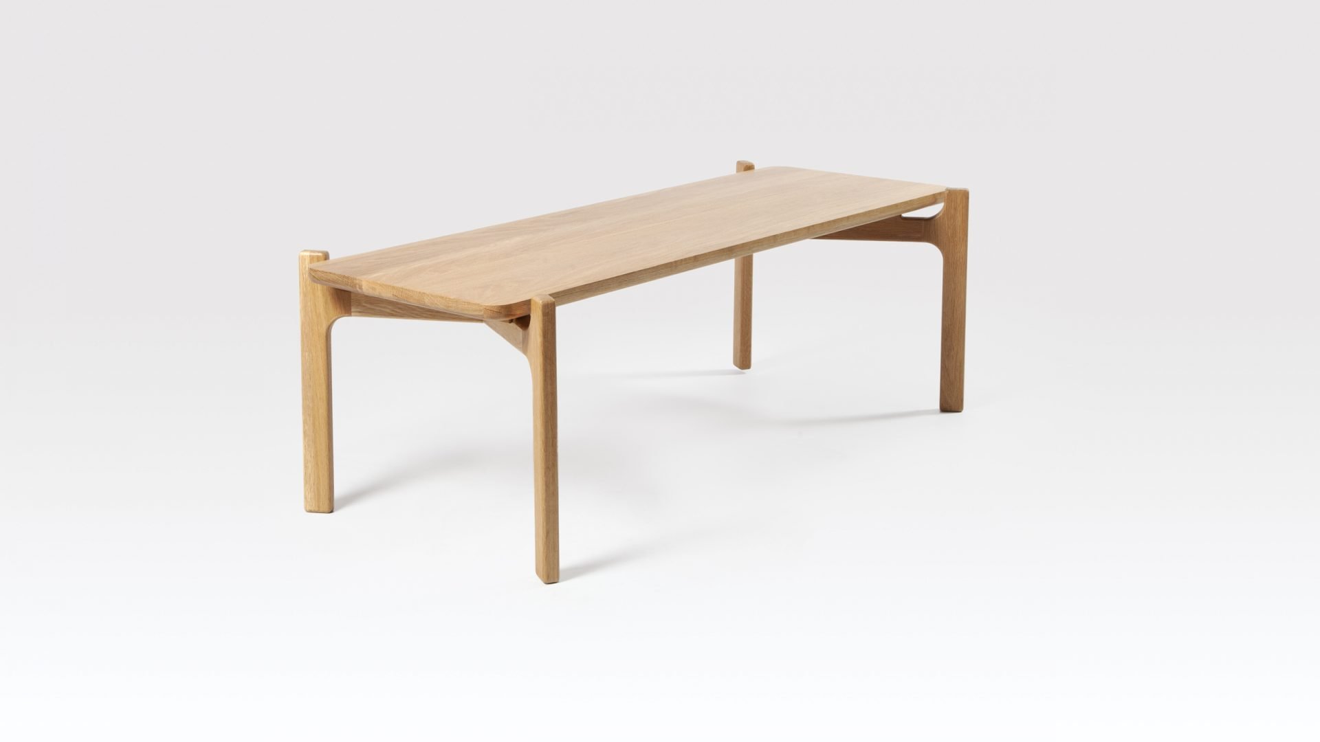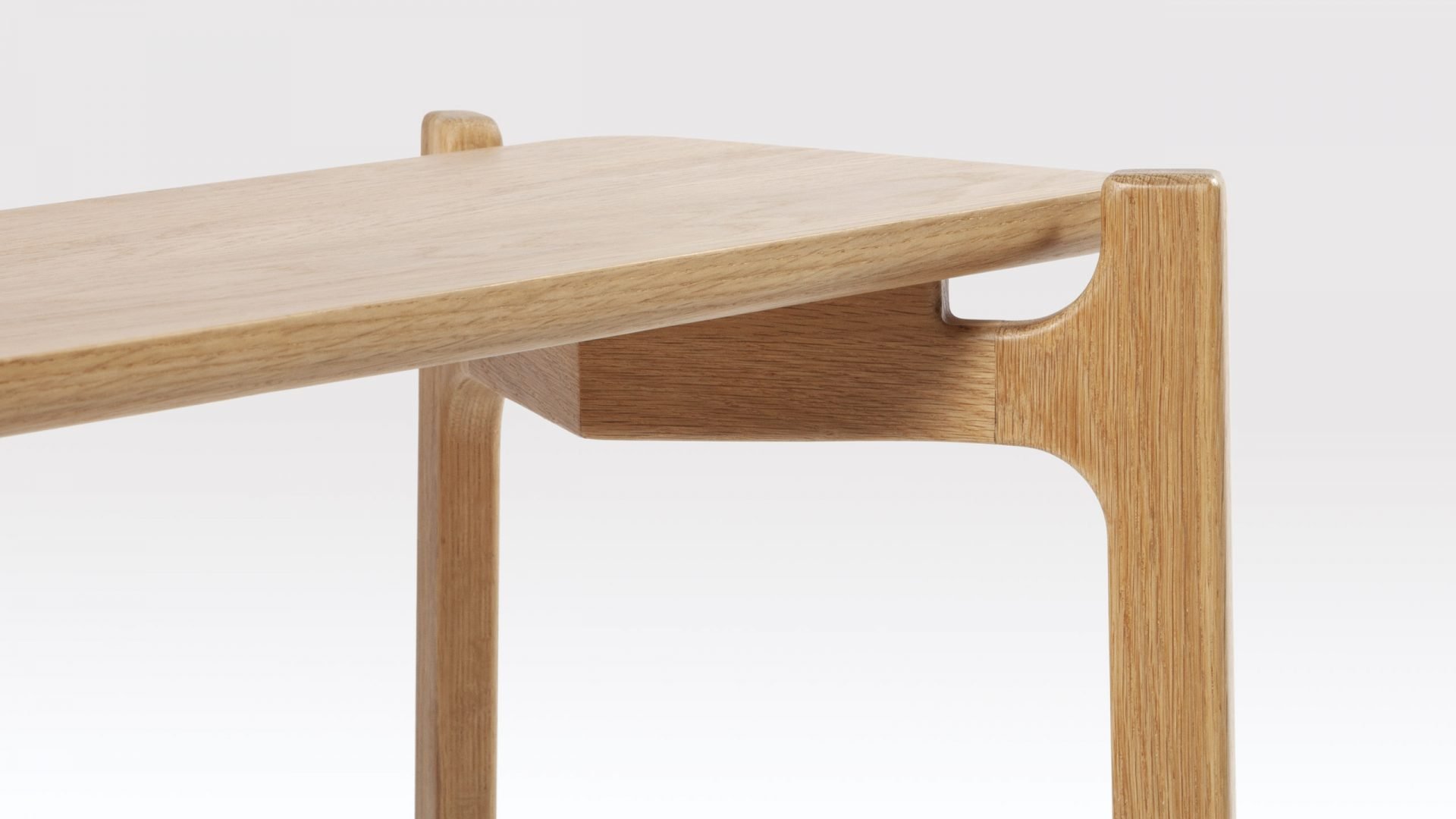 The Shaw Oak side table would suit a variety of commercial interiors, particularly in the hospitality sector. Both Scandi and Japanese design have influenced the look of this modern side table with its ‘form follows function’ aesthetic. The bottom edge of the solid oak table top has been smoothly rounded, tie-ing it in perfectly with the beautifully crafted matching legs. This fairly narrow side table fits well with the proportions of the Shaw coffee table and can be nested with it or used separately. Both the coffee and side tables are part of the Shaw range which also includes a shelving unit. Interestingly, ‘shaw’ comes from the Old English for ‘woodland’ which is very apt as the Oak side table is made in Britain of sustainably sourced timber. This elegant end table is available in both Natural and Black finishes.