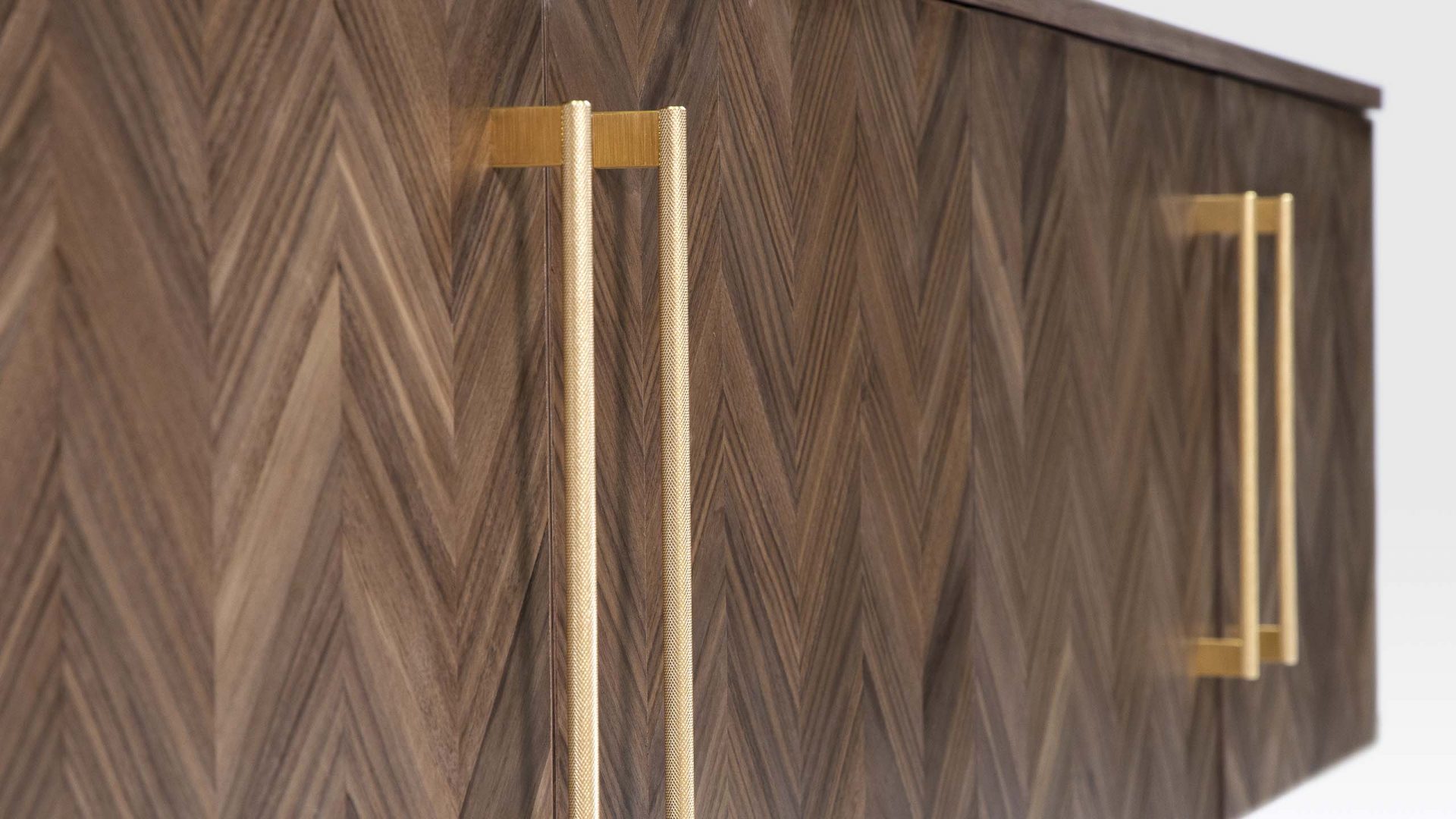 The Cyril sideboard 2400mm is an extra large sideboard that can be used in place of filing cabinets when a more domestic look is required for your office furniture. That’s because they have been designed to hold lever-arch folders as well as being useful as general storage cabinets. This extra long sideboard is part of a versatile range of modern office furniture that has been influenced by mid-century design. Handmade to order by our craftsmen this wooden sideboard has a carcass made of sustainably sourced birch ply, while the legs and stretchers are solid turned walnut. We offer a choice of door options that not only includes a herringbone-patterned walnut veneer but also an acoustic version. The Cyril extra large sideboard can also be made in bespoke sizes to fit your commercial interior, making these sideboards very adaptable, as well as great to look at.