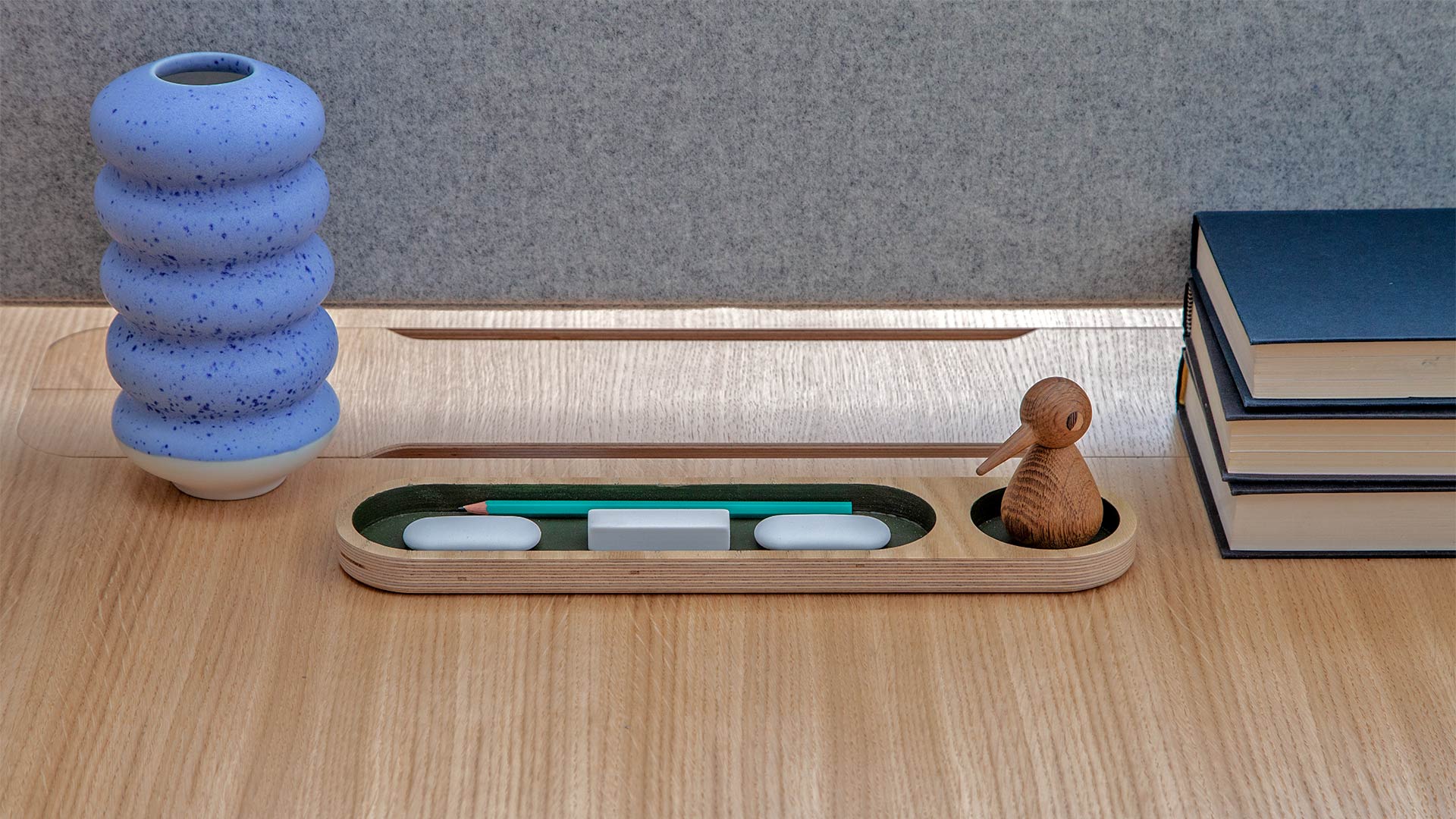 The Theodore Bench Desk System is designed for multiple configurations making it a very adaptable office desk solution. The bench system has integrated cable trays and is constructed from a sustainably sourced FSC oak frame with a real oak veneered birch ply top; which means the desk benches are both durable and environmentally friendly. Liqui’s sustainability ethos comes through again in the form of an individual desk organizer for each workspace which is made from off-cuts that would usually be discarded. An optional upholstered acoustic screen divider can also be specified. These bench style desks offer contemporary style with a contract finish at a very reasonable price per seat; as well as being manufactured in Britain by our own craftsmen.