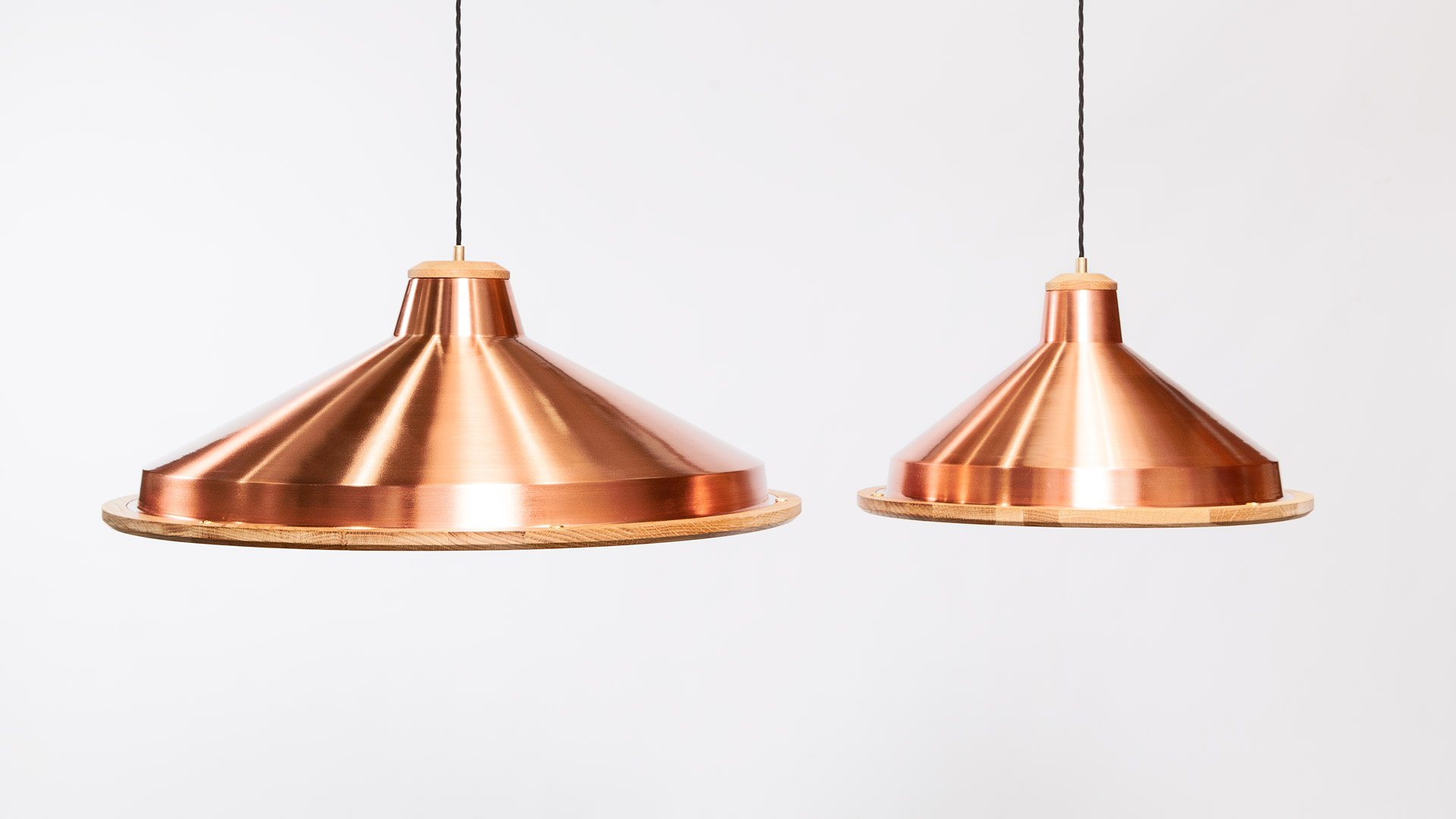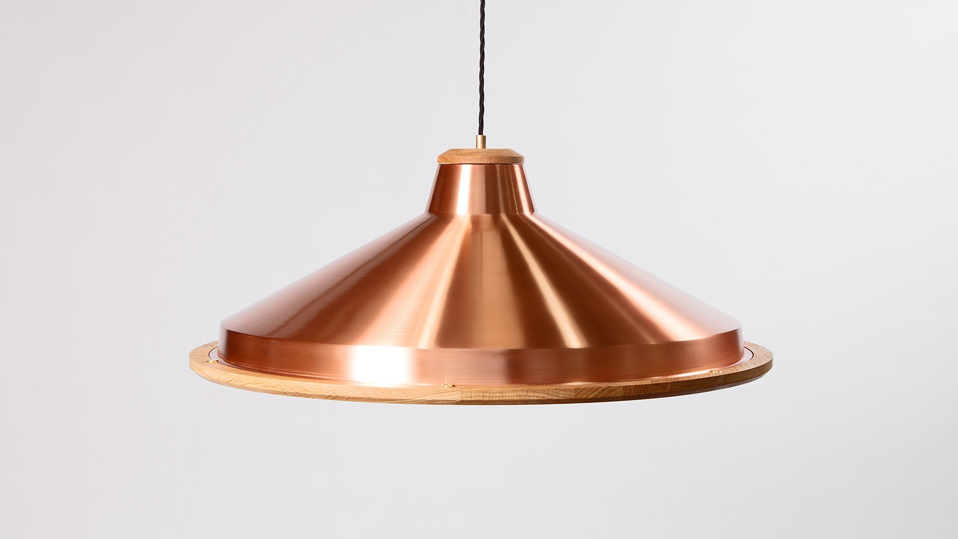The Trafford is a large pendant lighting option which retains the essence of a traditional pendant light fitting while still being wholly contemporary. With a choice of Birch ply or Oak trimmed rim and top, the spun aluminium shade can either be finished with a clear lacquer or powder coated if preferred. And if your commercial interior would benefit from copper ceiling lights this is a bespoke alternative that we offer.