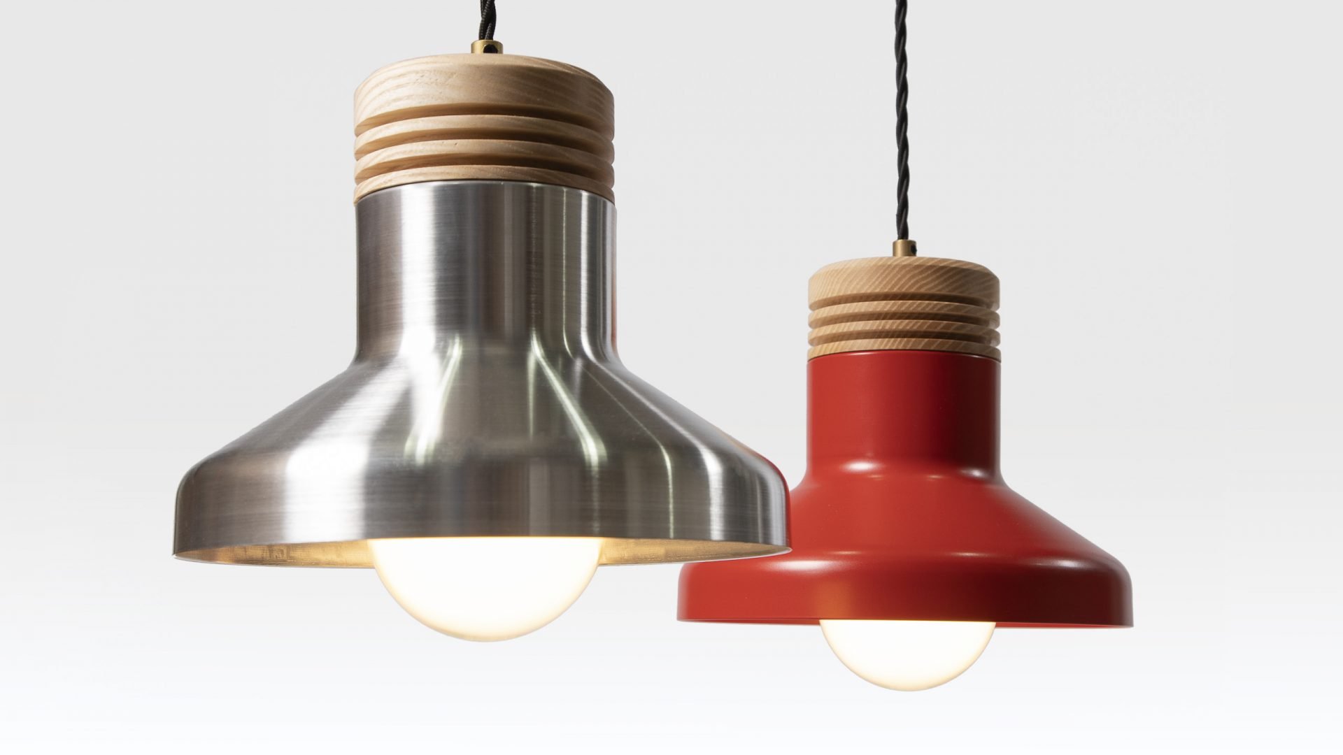 The James pendant lights draw their design inspiration from Industrial Modernism with their precision machined aesthetic. The metal lamp shades are made from spun aluminium and can be powder coated in a range of colours to suit your commercial interior. Each metal light shade is topped with a hand turned oak cap which gives the ceiling lights a very distinctive look. Manufacturing to order means that Liqui Contracts can customise our James pendant lights to fit with current commercial interior trends and the needs of our clients.