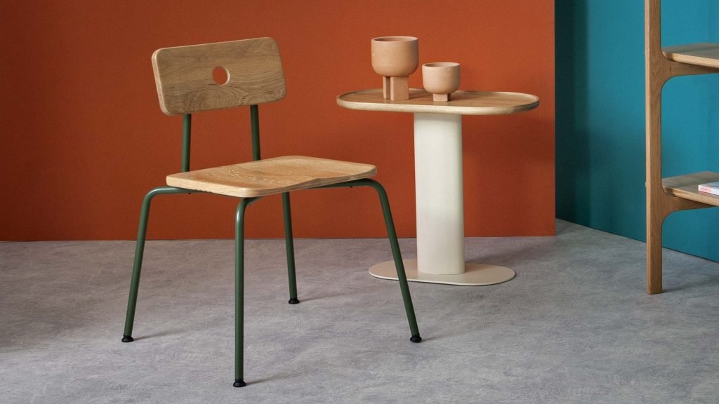The quirky Moore Chair and Moore Stool, with a single ‘eye’ placed on one side of the backrest, take their name from Patrick Moore, the eccentric monocle-wearing English astronomer. Made from formed beech ply and a steel wire frame (and available in oak veneer or upholstered versions), the characterful Moore Chair and Stool are ideal for use in coffee shops, cafes and restaurants. Also perfectly suited to a range of hospitality settings, the Delores Chair and Delores Stool each have a lozenge-shaped, padded backrest and seat, set on a tubular steel frame. The smart, modern dining chair and bar chair/stool offer great design versatility: upholstery is available in a variety of fabrics and leathers, and the tubular steel frame can be specified in any colour choice.