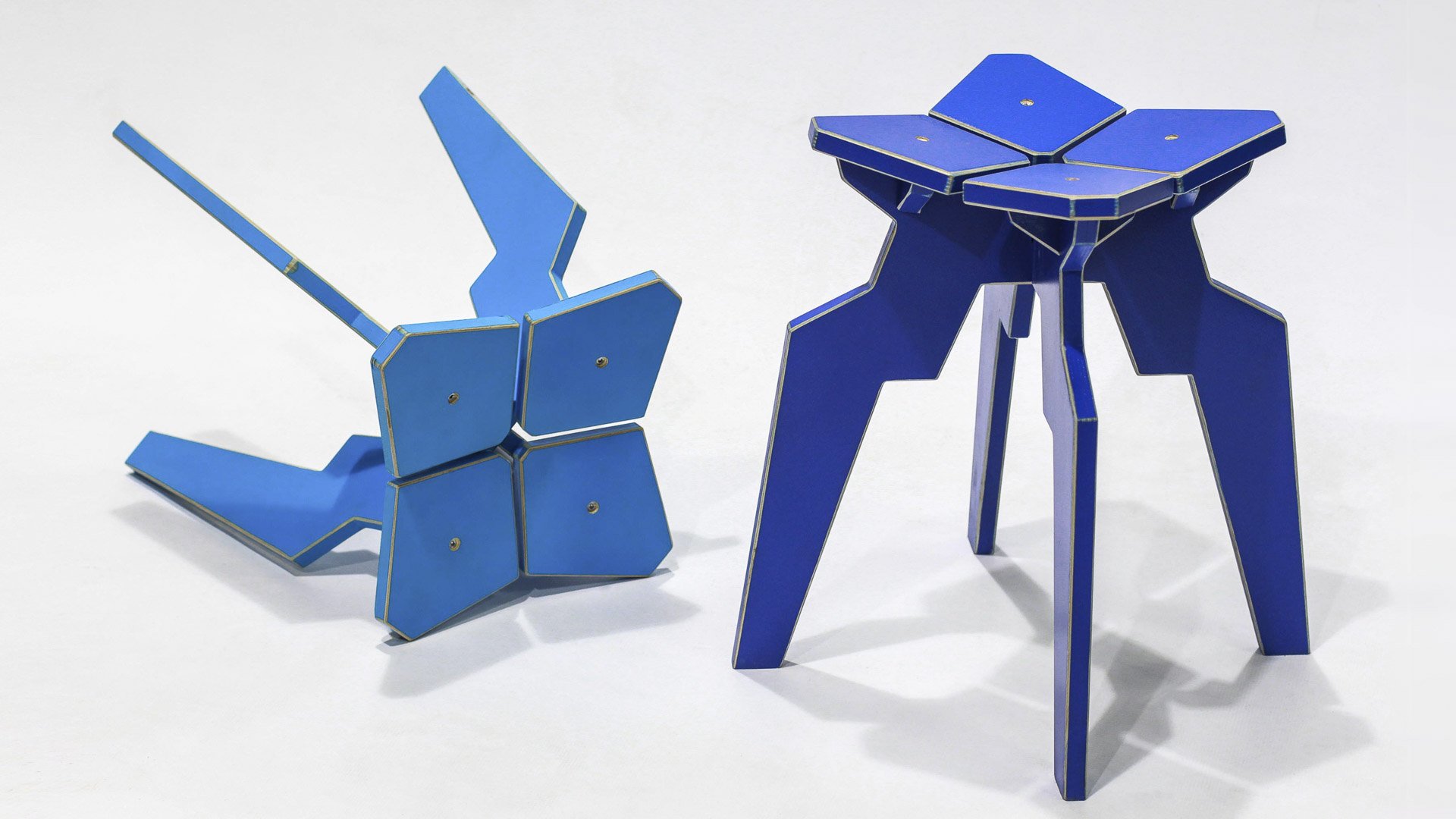 These are the stacking stools of the Splice range. Shorter than the bar stools, they stack neatly on top of each other and make practical but funky cafe furniture or breakout area furniture. Inspired by the maritime surroundings of our original studio/workshop at Shoreham Port this original designer furniture uses similar angular shapes to those seen in such things as dockside machinery and sea-defences. The strong forms of the stools are picked out by rubbing back the paint on the edges before finishing in a clear lacquer. Clients can choose a bespoke colour to suit their commercial interior design.
