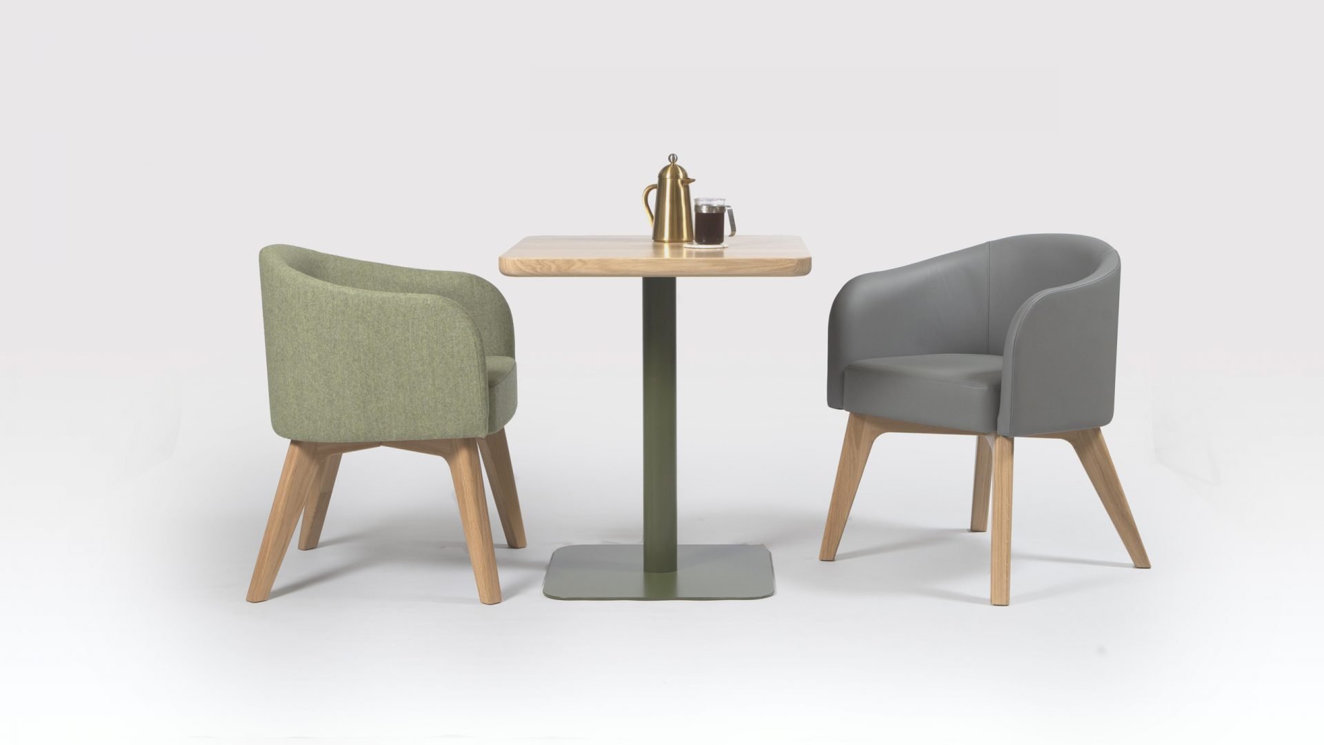 Salma is a reasonably small tub chair, intelligently designed by Liqui to save space in commercial interiors. While harking back to the glamour of the 1930s, this is also a thoroughly modern tub chair, being made in Britain of sustainably sourced materials. With their elegant, hand-finished oak legs, these tub dining chairs can be upholstered in a variety of finishes; and whether you choose fabric or leather tub chairs for your interior, the colours can be customised to suit. The classic look of our small tub chair makes it very adaptable as a piece of contract furniture, equally suitable as restaurant dining chairs or as stylish reception seating in offices and hotels.