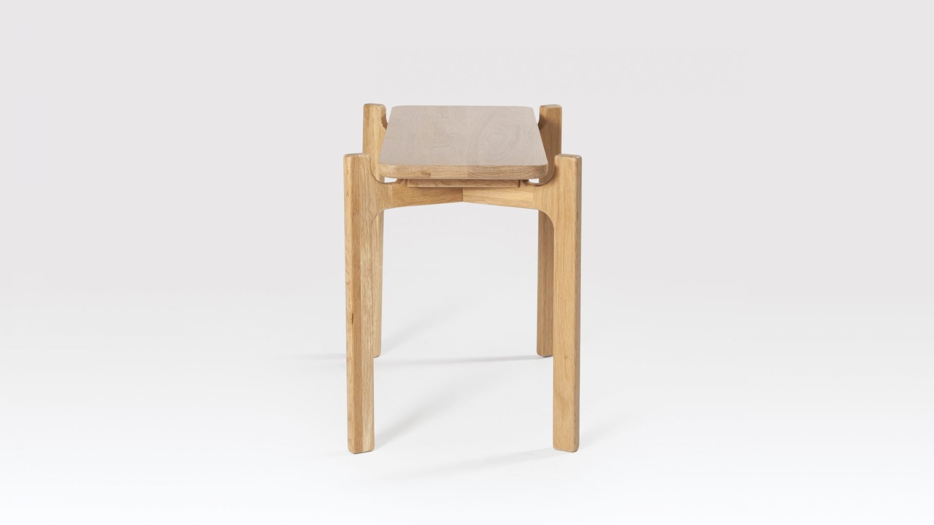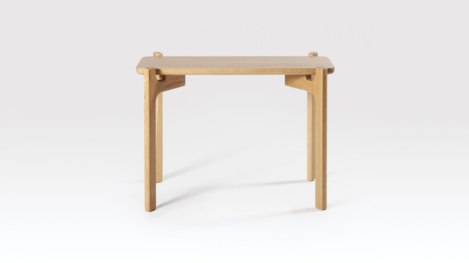 The Shaw Oak side table would suit a variety of commercial interiors, particularly in the hospitality sector. Both Scandi and Japanese design have influenced the look of this modern side table with its ‘form follows function’ aesthetic. The bottom edge of the solid oak table top has been smoothly rounded, tie-ing it in perfectly with the beautifully crafted matching legs. This fairly narrow side table fits well with the proportions of the Shaw coffee table and can be nested with it or used separately. Both the coffee and side tables are part of the Shaw range which also includes a shelving unit. Interestingly, ‘shaw’ comes from the Old English for ‘woodland’ which is very apt as the Oak side table is made in Britain of sustainably sourced timber. This elegant end table is available in both Natural and Black finishes.