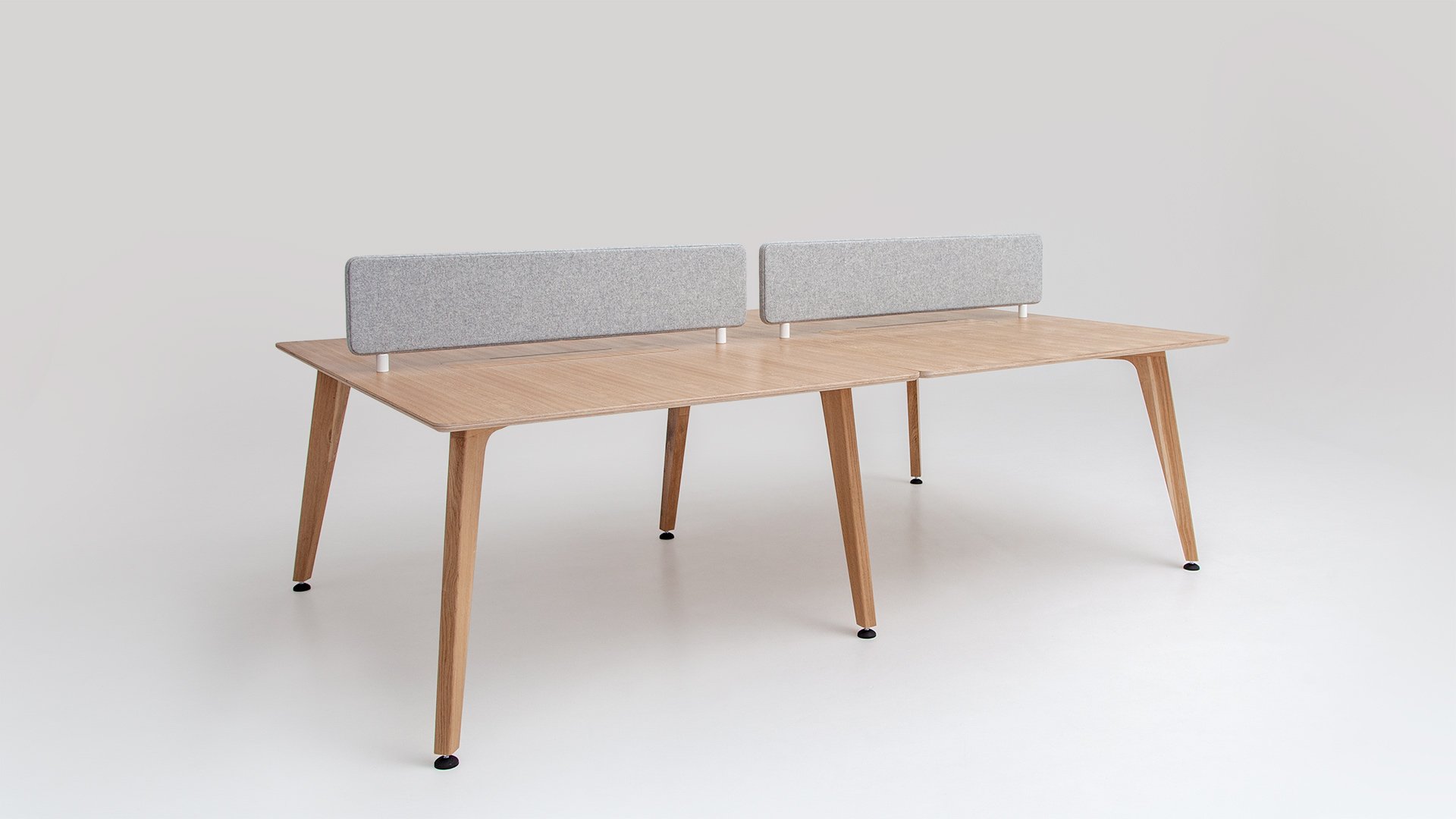 The Theodore Bench Desk System is designed for multiple configurations making it a very adaptable office desk solution. The bench system has integrated cable trays and is constructed from a sustainably sourced FSC oak frame with a real oak veneered birch ply top; which means the desk benches are both durable and environmentally friendly. Liqui’s sustainability ethos comes through again in the form of an individual desk organizer for each workspace which is made from off-cuts that would usually be discarded. An optional upholstered acoustic screen divider can also be specified. These bench style desks offer contemporary style with a contract finish at a very reasonable price per seat; as well as being manufactured in Britain by our own craftsmen.