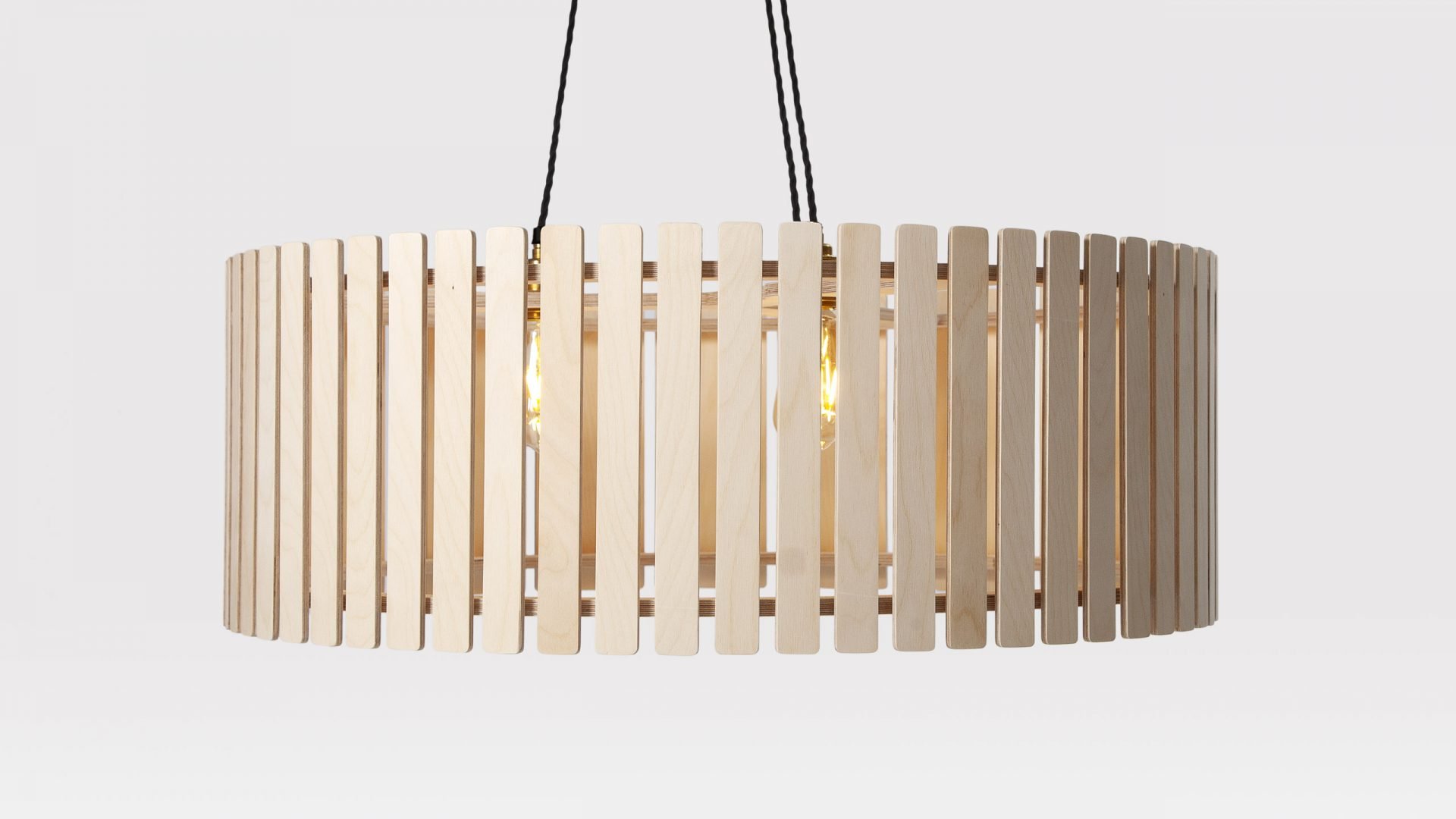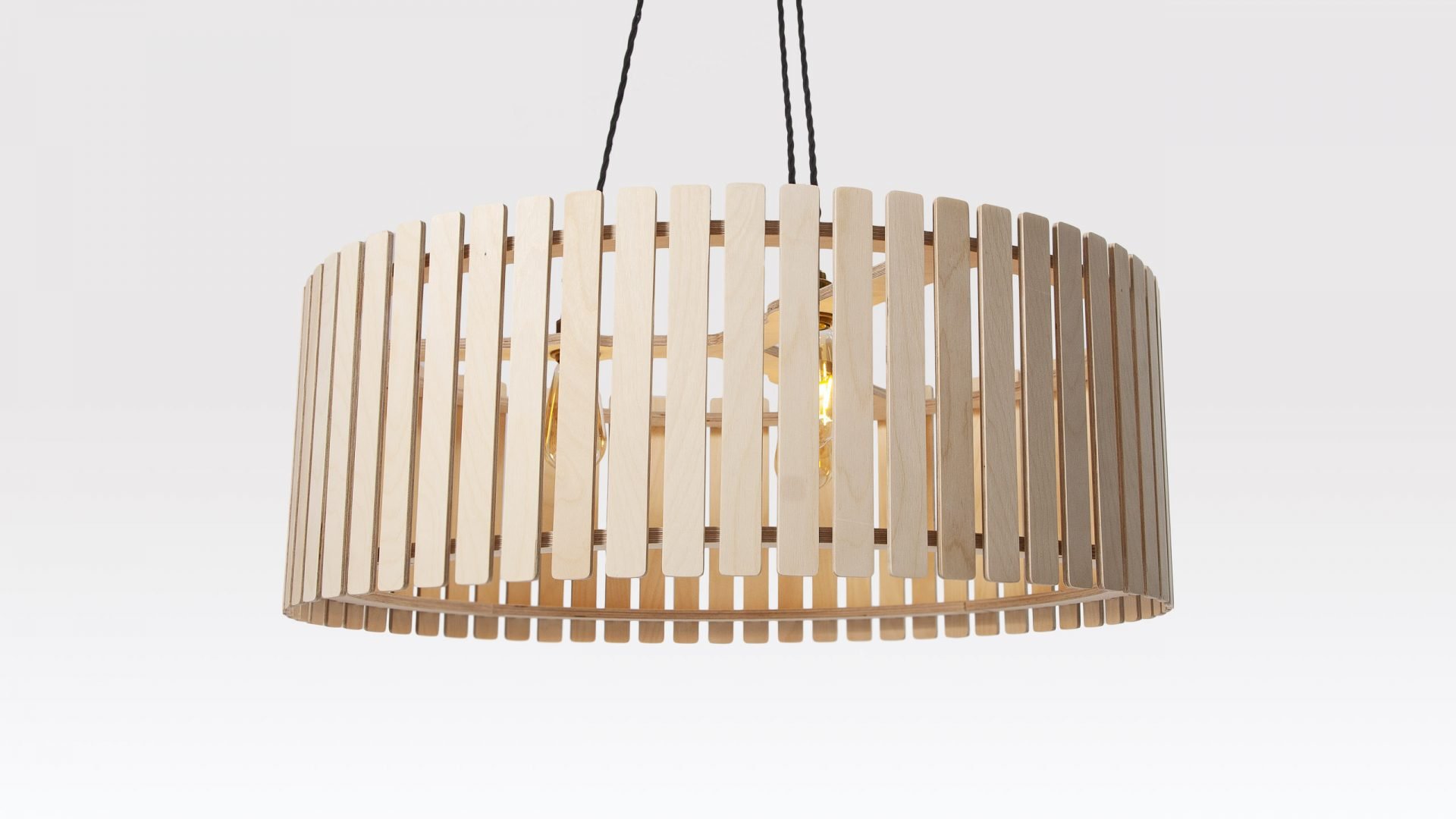 The Brixham Large Drum Light is part of a wood lighting range that comes in several styles of varying sizes. The design of the drum light shade uses wooden slats based on the look of traditional crab pots which led us to name the lighting range after the well-known fishing town of Brixham in Devon. Made from sustainably sourced birch ply, the hand-finished wooden ceiling lights are available in several finishes including an oak veneer. The large drum lamp shade can also be specified in bespoke colours to tie-in with your commercial interior. The Brixham drum lights are designed and manufactured in Britain by Liqui Contracts.