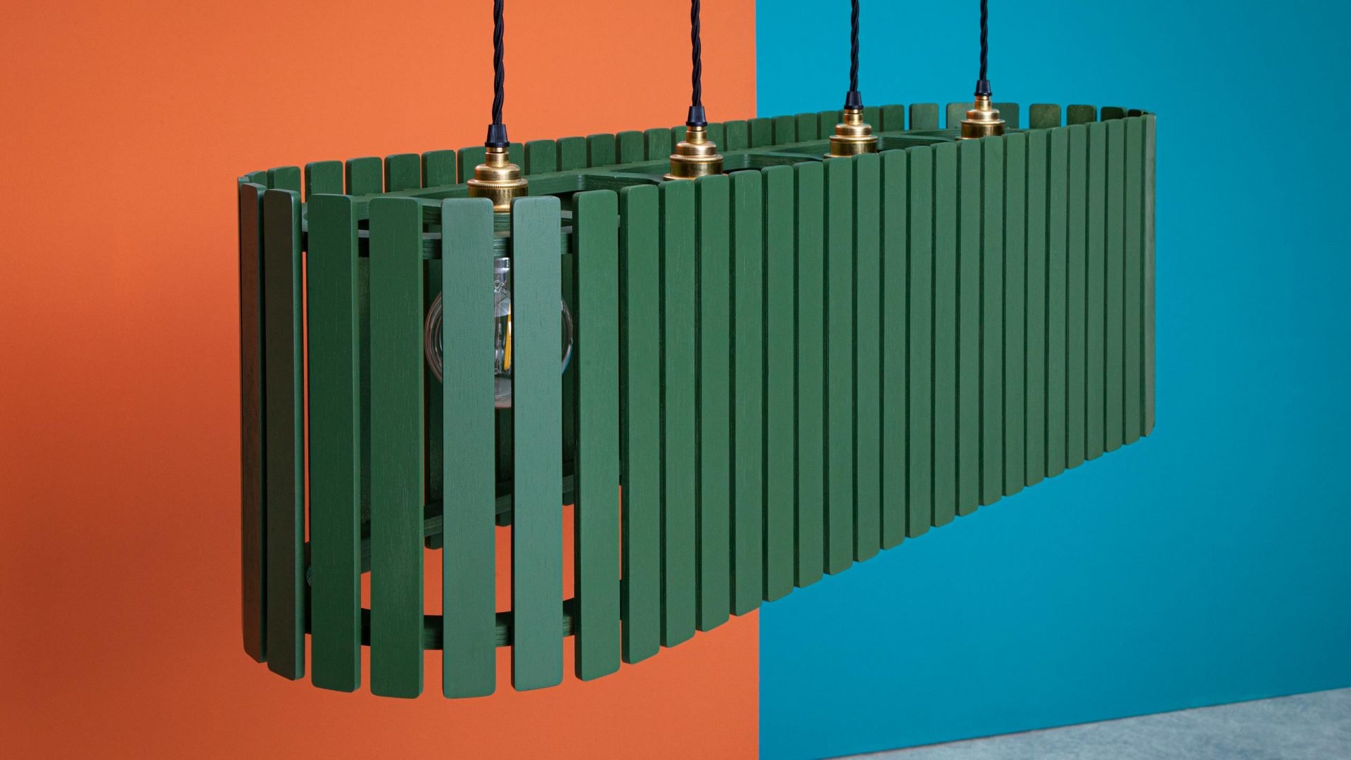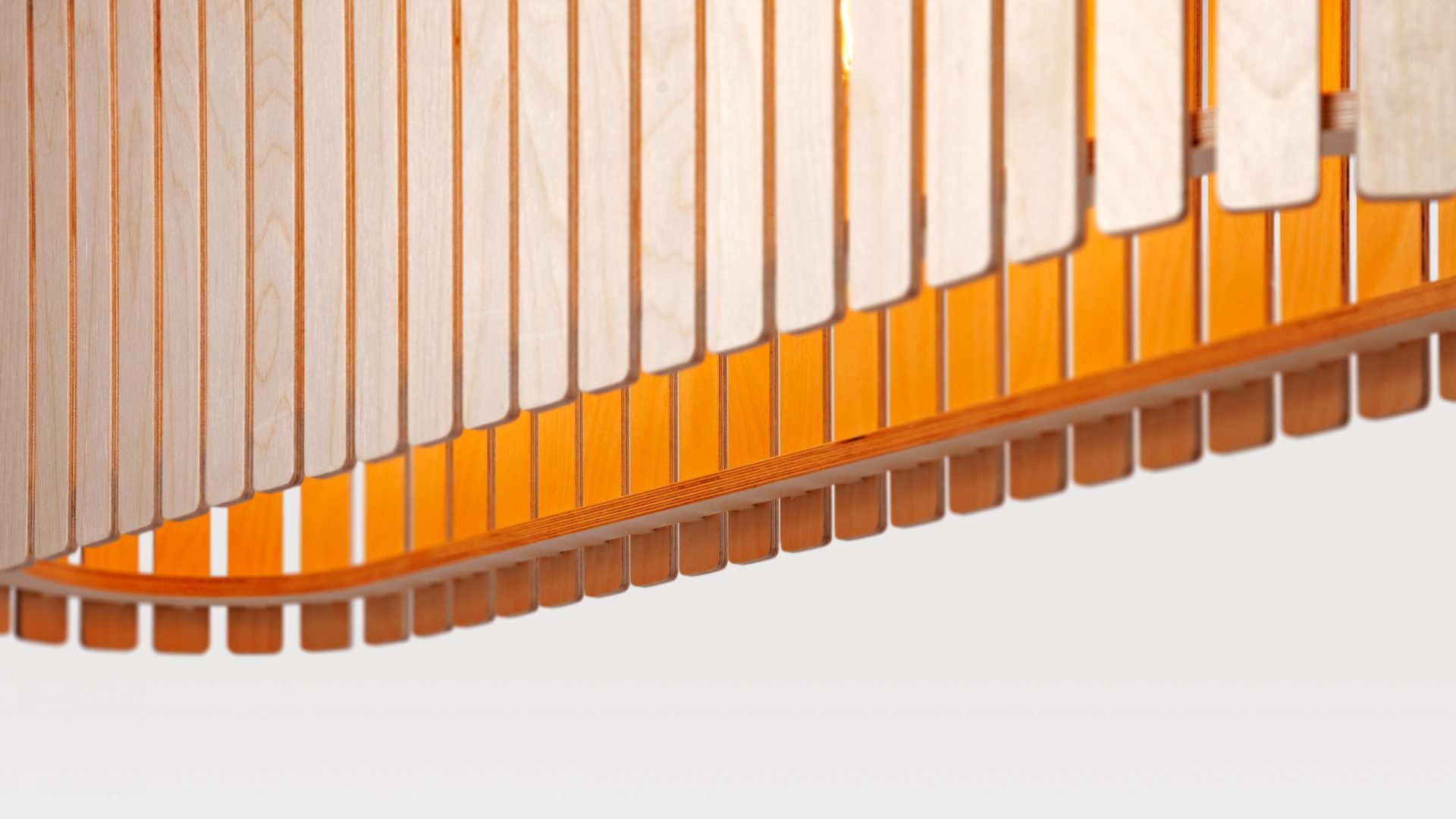 The Brixham Long Wooden Ceiling Light takes four bulbs set within its wide lampshade. It’s one of a range of wooden lights that come in several styles of varying sizes. The design of the large lamp shades take their inspiration from traditional crab pots made of wooden slats. Which is why the lighting range is called Brixham, after the Devon fishing town. This hand-finished wood light unit makes a distinctive solution where long lighting is needed in a modern commercial setting, being available in several finishes including an oak veneer, as well as bespoke colours to suit your interior. The Brixham long wood pendant light is designed and manufactured by Liqui Contracts in Britain and is made of sustainably sourced birch ply.